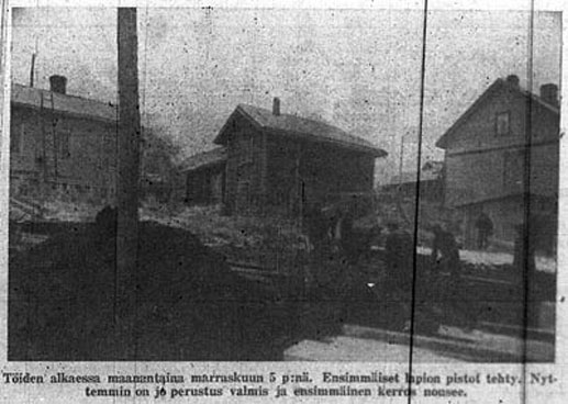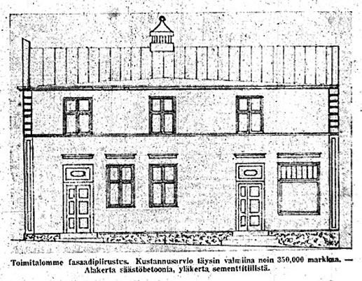 Alla on piirustus talosta, jonka piti valmistua Pispalan työväentalon yhteyteen. Lapuanliikkeen ja oikeiston painostuksesta selkeästi vasemmistolaisten lehtien julkaiseminen kiellettiin ja hanke jouduttiin keskeyttämään.