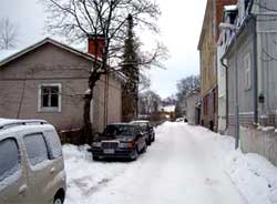 Asuntopysäköinti tontilla on rinteen jyrkkyyden vuoksi ollut vaikeaa toteuttaa luontevasti. Pääosa asukaspaikoituksesta sijoittuu kadun varren levennyksiin ja erityisille paikoitusalueille, jotka on pääsääntöisesti toteutettu mittakaavaltaan kömpelösti.