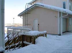 Luonnollisimmin asuntopysäköinti toteutuu pihalla erillisessä tallissa tai taivasalla. Rinnealueilla tontille ajon toteuttaminen on kuitenkin mahdotonta. Jyrkimmillä vanhoilla rinnetonteilla kadunvarsipysäköinti (kuva 1) tai asuntopysäköinnin keskittäminen erillisille, yhteisille paikoitusalueille lienee ainoa realistinen ratkaisu. Tilan ja maaston salliessa tontin rajalle pispalalaisen piharakennuksen tapaan rakennettu yhden auton autotalli on hyvä ratkaisu (kuva 4). Pispankatu 35 uusi piharakennus on hyvä esimerkki, jossa autotalli on mitoitettu peräkkäin kahdelle autolle.