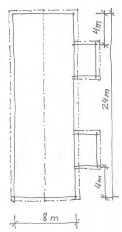 Yhden perheen taloissa suositellaan rungon pituudeksi enintään 13 m:ä ja useamman asunnon taloissa 24 m:ä. (piirroskaaviot)