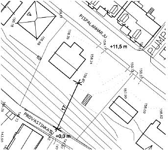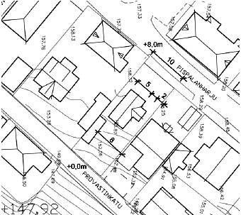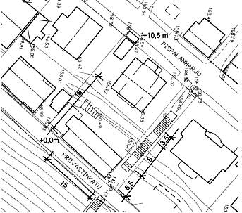 Kuva Vertailuesimerkkinä Provastinkatu 14, joka on tiiviisti katulinjaan rakennettu tontti.