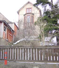 Kuva Talo on vähän katulinjasta irti ja talon eteläpuolella on pieni piha. Rinne laskee rakennuksen eteläpuolelta jyrkästi Provastinkadulle. Tontin autopysäköinti on ratkaistu luontevasti pihalla pensasaidan suojassa talon ja kadun välissä.