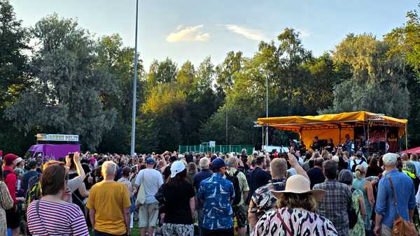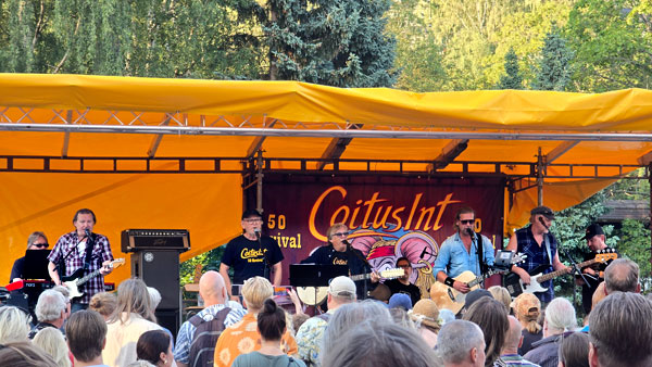 Pispala Folk 2025 juhlittiin hienossa säässä. Porukkaa oli liikkeellä paljon. Kuvassa ohjelmiston illalla päättänyt Coitus Int 50 Revival.