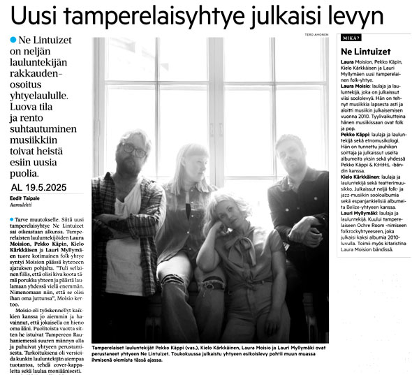Aamulehden (19.5.2025) mukaan Ne Lintuizet on neljän lauluntekijän rakkauden osoitus yhtyelaululle.