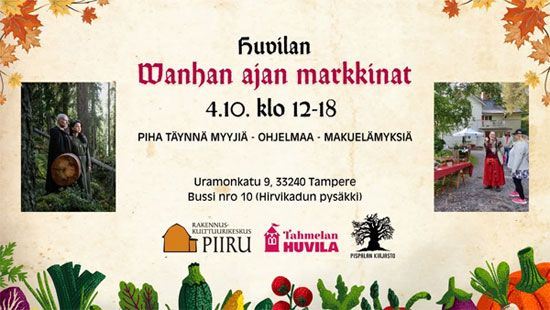 Wanhan Ajan Markkinat Tahmelan huvilan ympäristössä lauantaina 4.10.2025 klo 12 - 18.