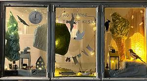 Jouluiset ikkuna-asetelmat tuovat valoa joulun odotukseen. Ensimmäinen asetelma avautunut Mäkikatu 84:ssa ja toinen Erämiehenkadulla.